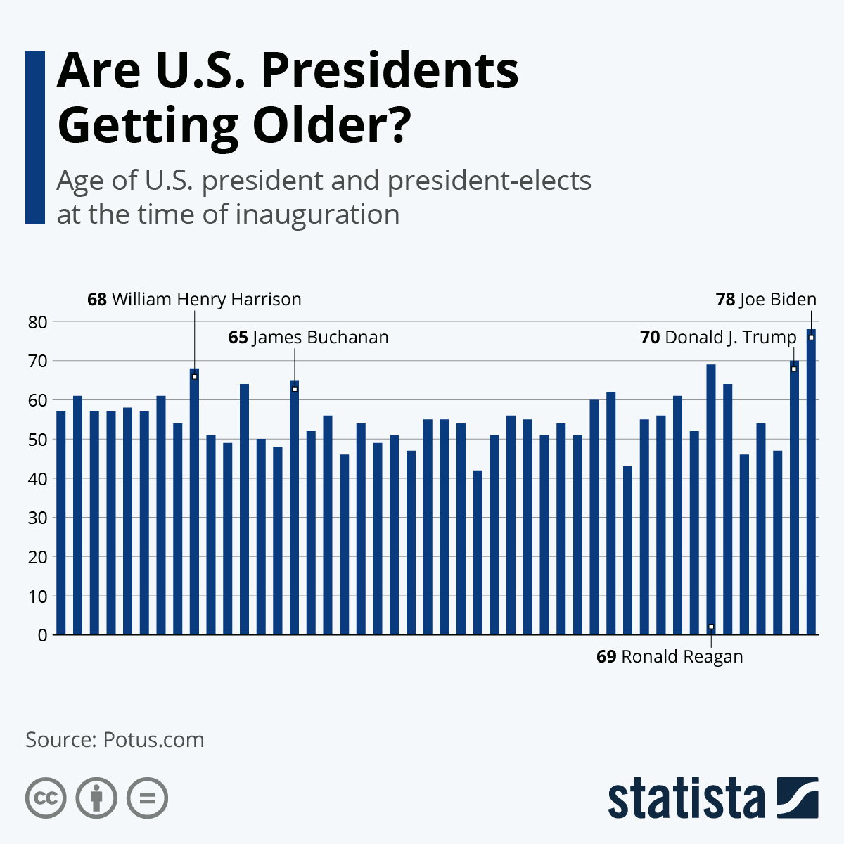 The (sort of) good news: The feeling that the top echelons of the US government are becoming gerontocratic (a la late Soviet Politburo) is not new when it comes to the presidency – US presidents are not getting older.