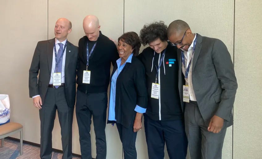By early this year, with midterms firmly in sight, one saw politicians in every direction with their arms draped around crypto CEOs, sometimes literally. Just prior to the collapse of TerraUSD, for instance, the chair of the House Financial Services, Maxine Waters, invited a series of speakers to a panel on crypto. A photo was released showing Waters literally embracing some of the top heavies in the crypto market, including Circle’s Jeremy Allaire, FTX’s Sam Bankman-Fried, and Armstrong of Coinbase.